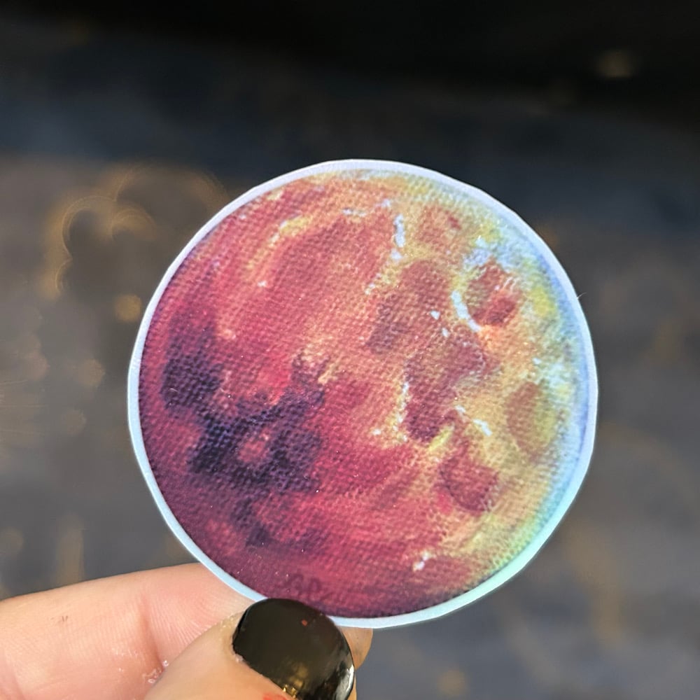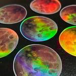 Holographic glossy vinyl stickers of "blood moon" artwork.