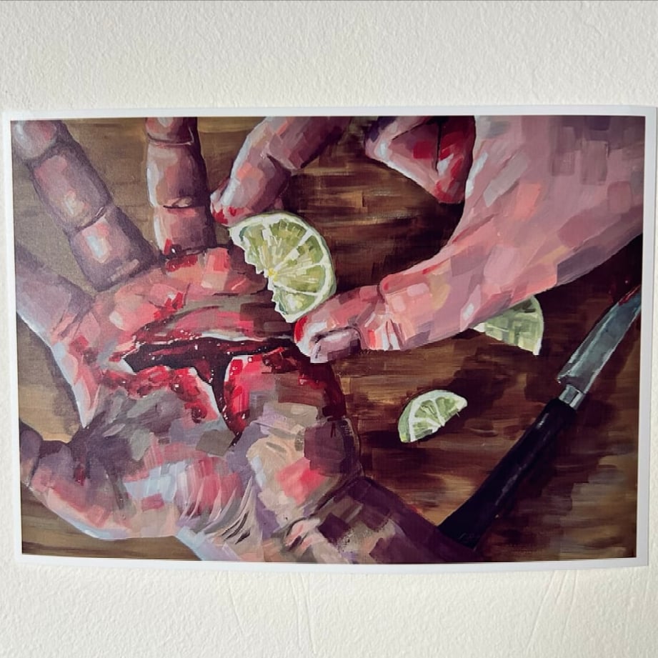 Fine art prints of "I think I like the sting" acrylic painting by Grace Eve.